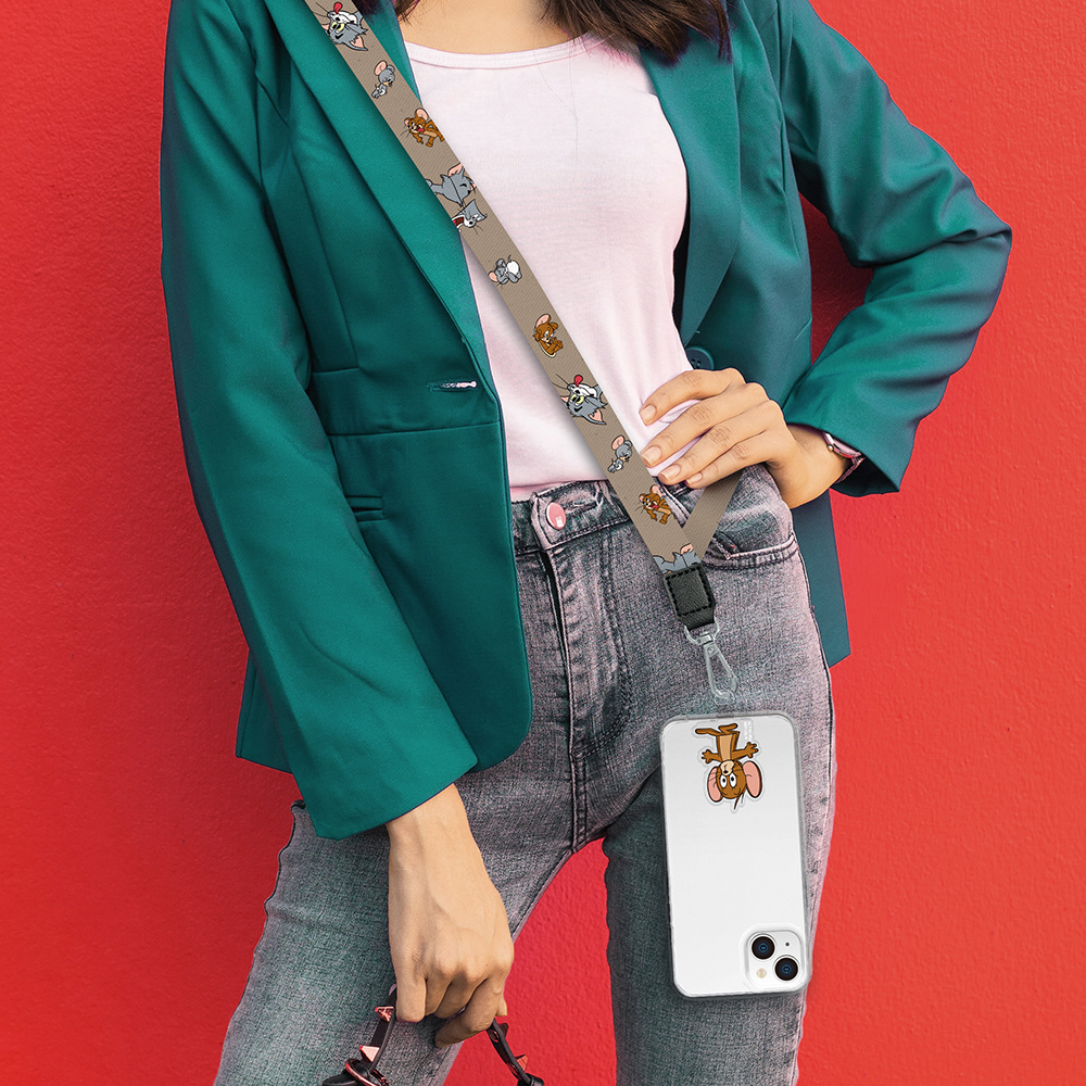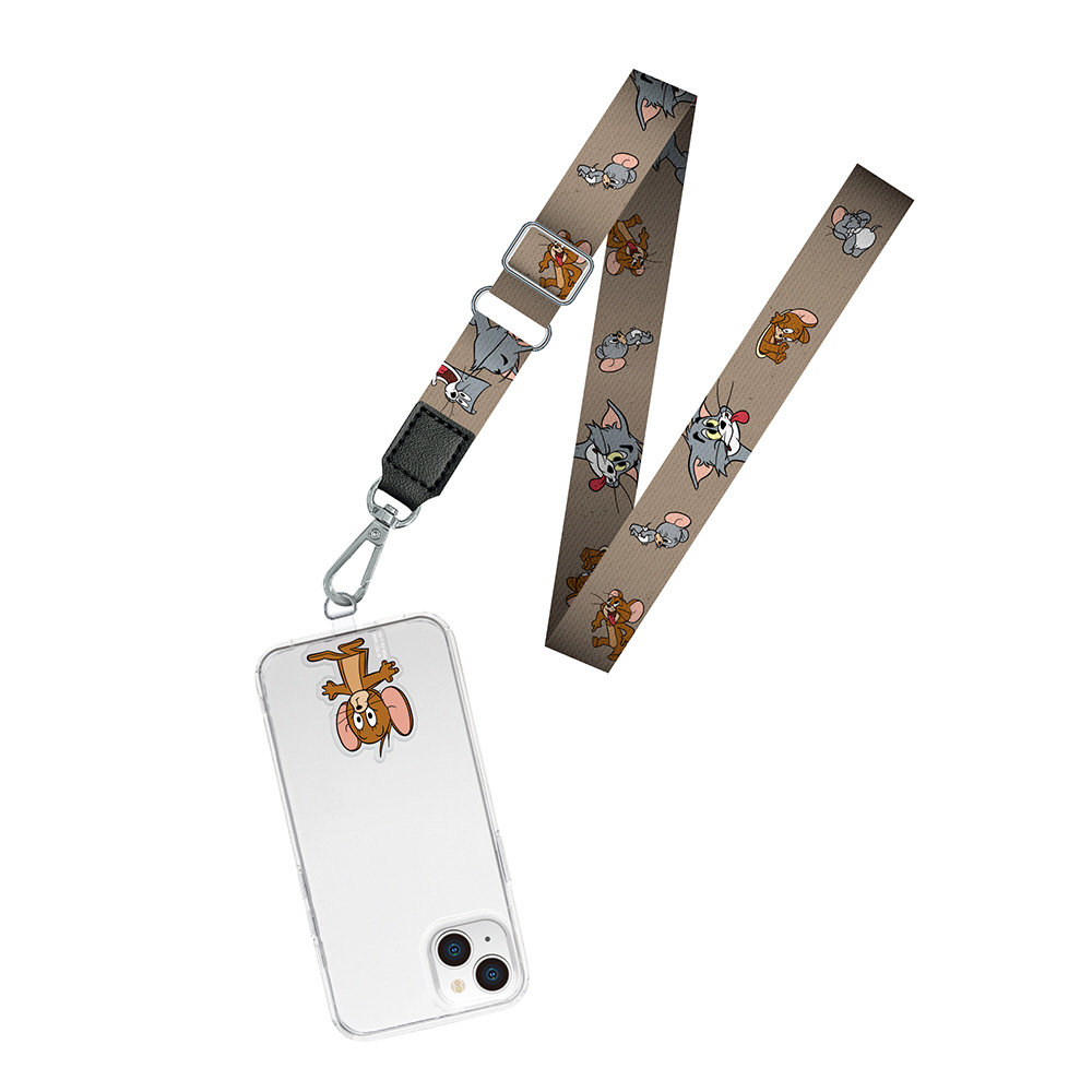 お気に入りのケースに挟むだけで快適なショルダータイプに切り替え可能な、「トムとジェリー」デザインのストラップホルダー付 ショルダーストラップ