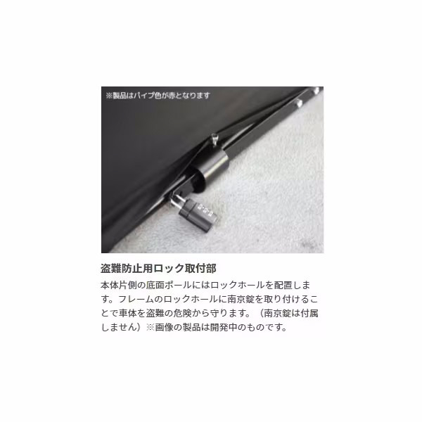 フレームのロックホールに南京錠を取り付けることで車体を盗難の危険から守ります。(南京錠は付属しません)