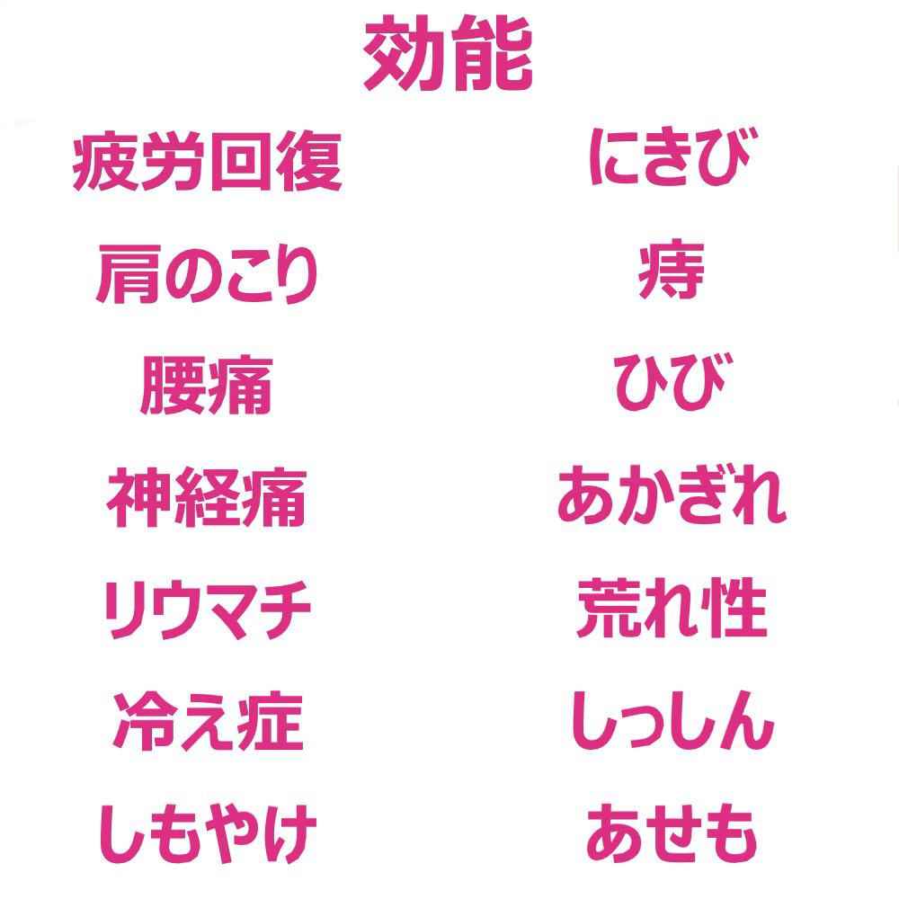 ●炭酸ガスが温浴効果を高め血行を促進し、疲労回復や肩こり・腰痛・冷え症に効果があります。