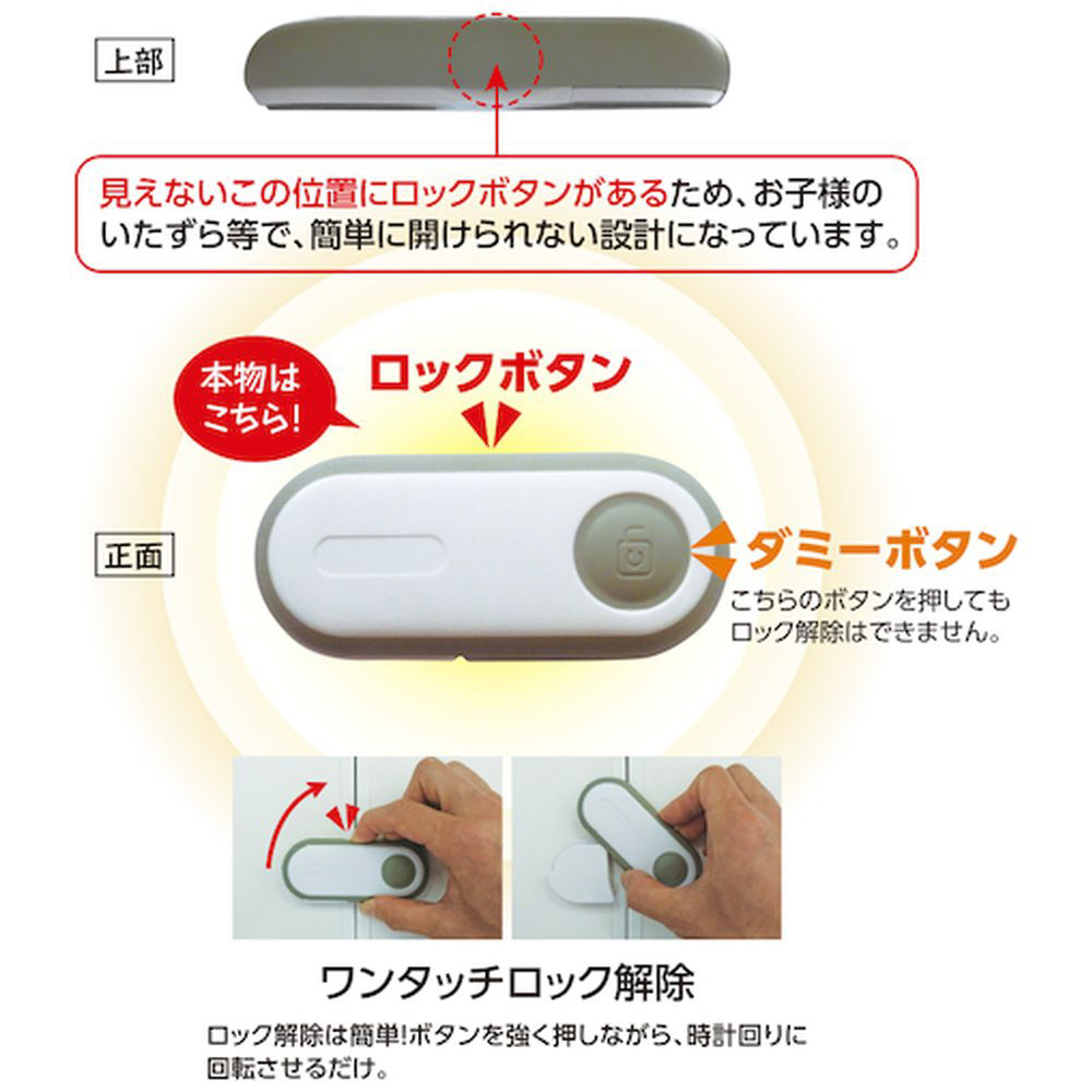 ■見えない位置にロックボタンがあるため、簡単に開けられない設計になっています。