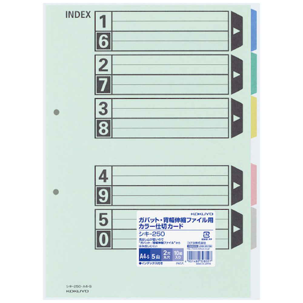 コクヨ カラー仕切カード(GF用) A4縦 5山+扉紙 2穴 10組入 シキ−250 63865301