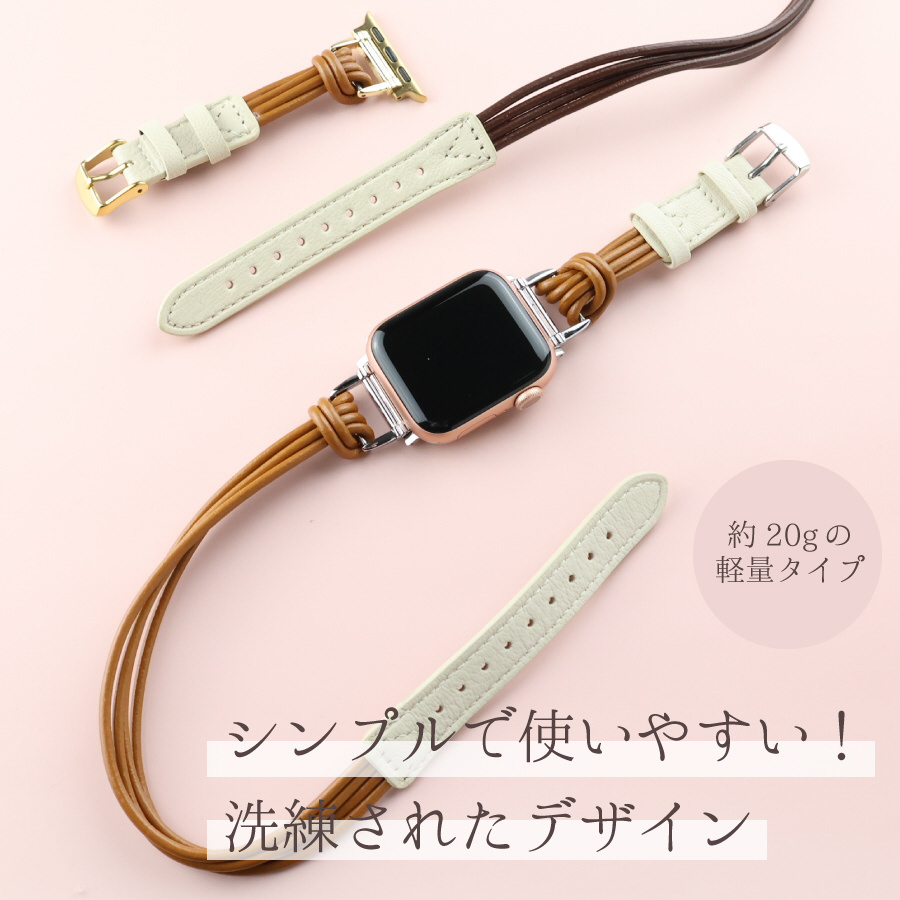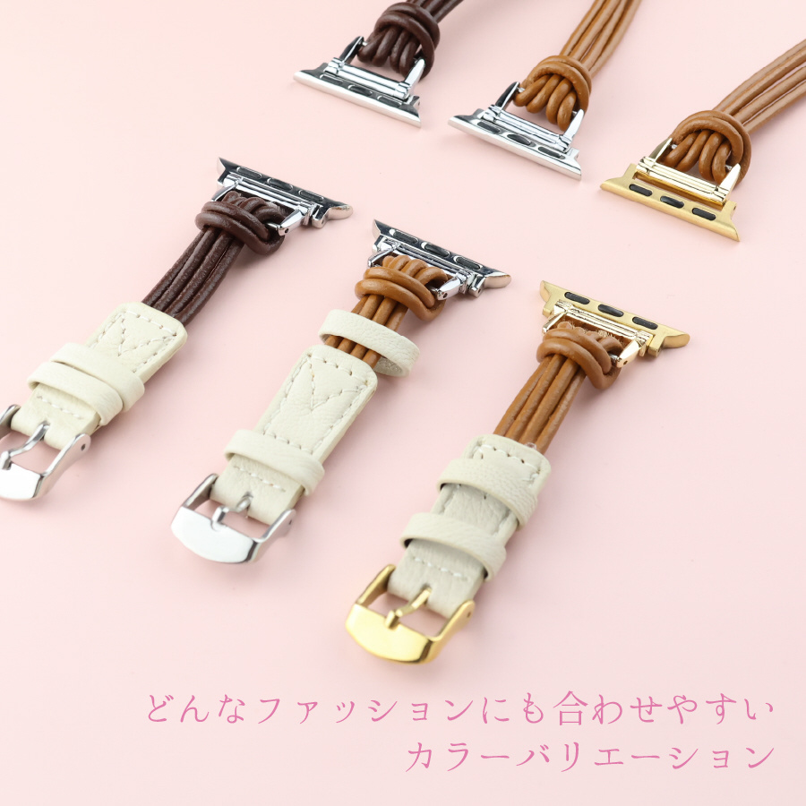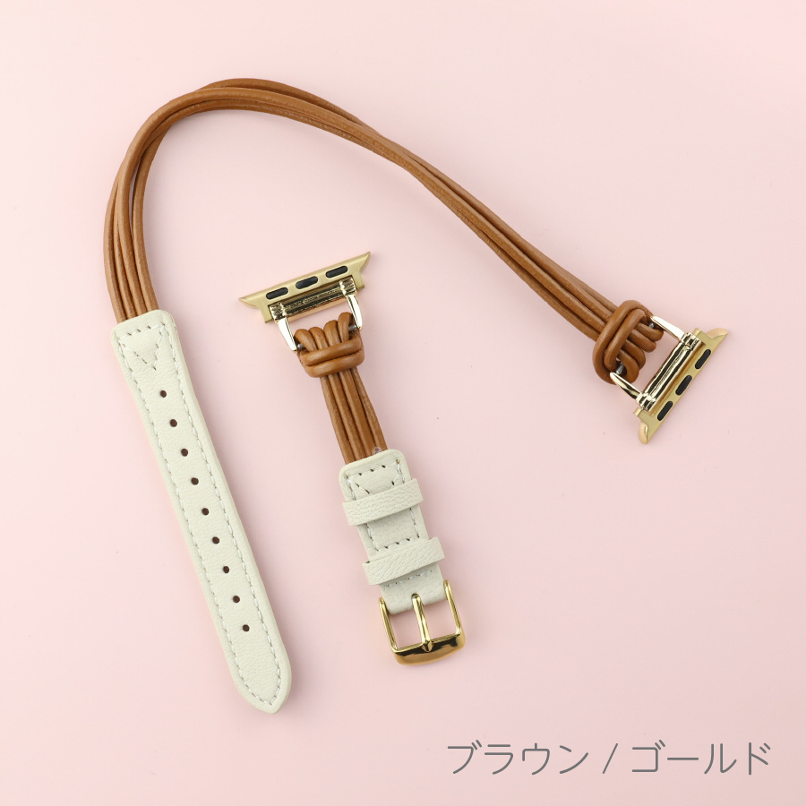 Apple Watch 41/40/38mm レザー ループベルト ブラウン/ゴールド IQ-AW015B41-BRG