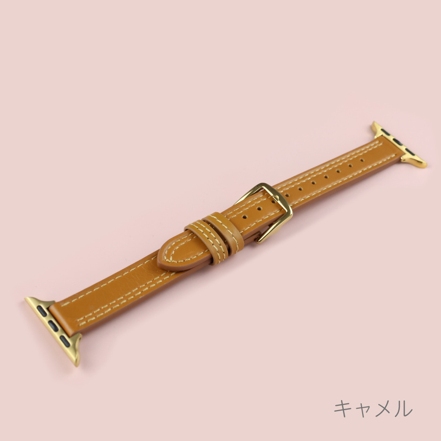 Apple Watch 41/40/38mm ステッチ スリム レザーベルト キャメル IQ-AW016B41-CA