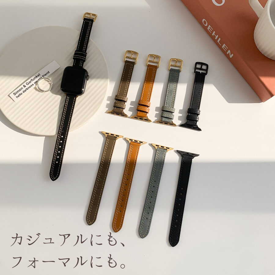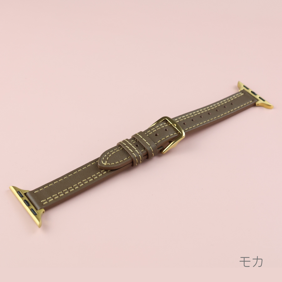 Apple Watch 41/40/38mm ステッチ スリム レザーベルト モカ IQ-AW016B41-MO