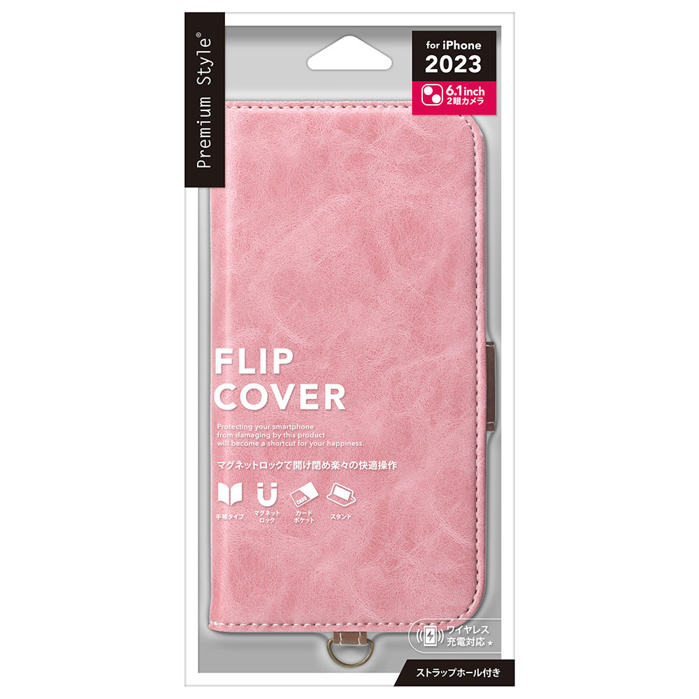 iPhone2023 6.1inch 2眼 フリップカバー ダスティピンク
