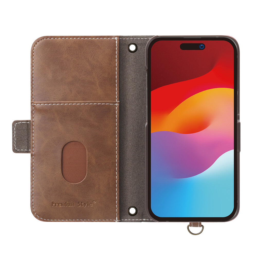 風合いの良い上質なPUレザー素材を使用したiPhone 15用 フリップカバー