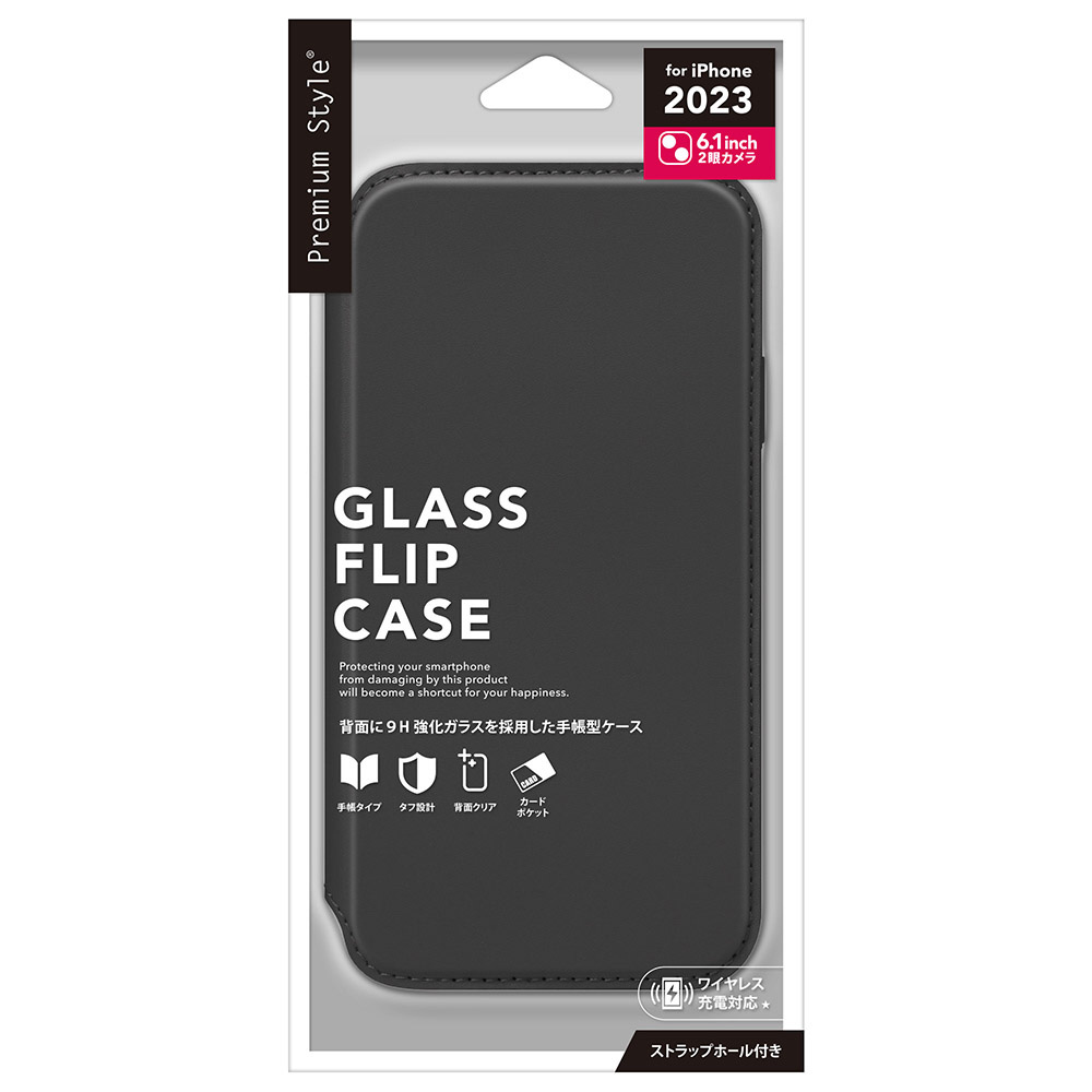 iPhone2023 6.1inch 2眼 ガラスフリップケース ブラック