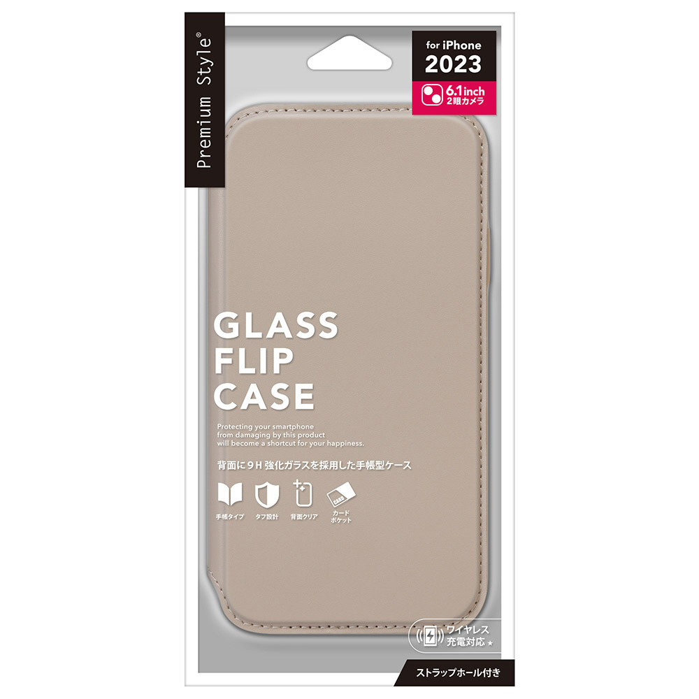 iPhone2023 6.1inch 2眼 ガラスフリップケース ベージュ