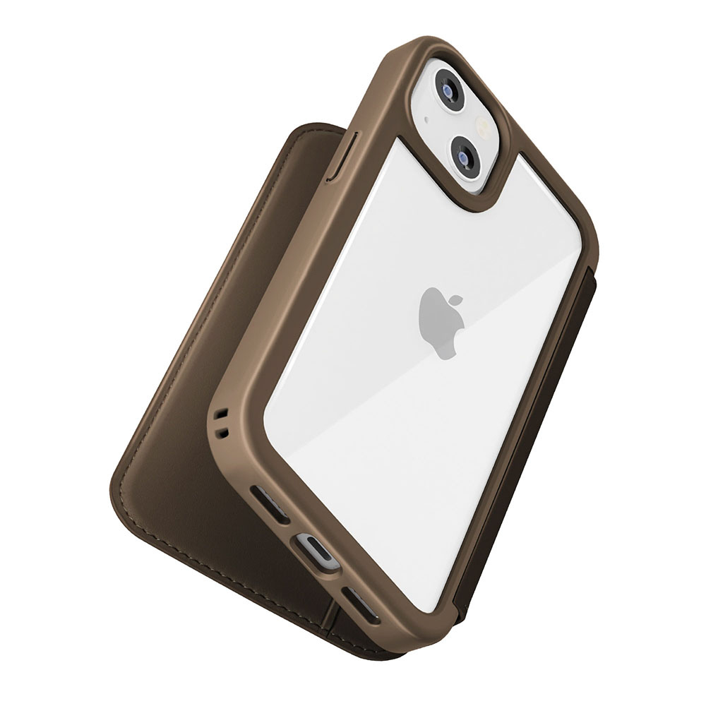 iPhone2023 6.1inch 2眼 ガラスフリップケース ブラウン