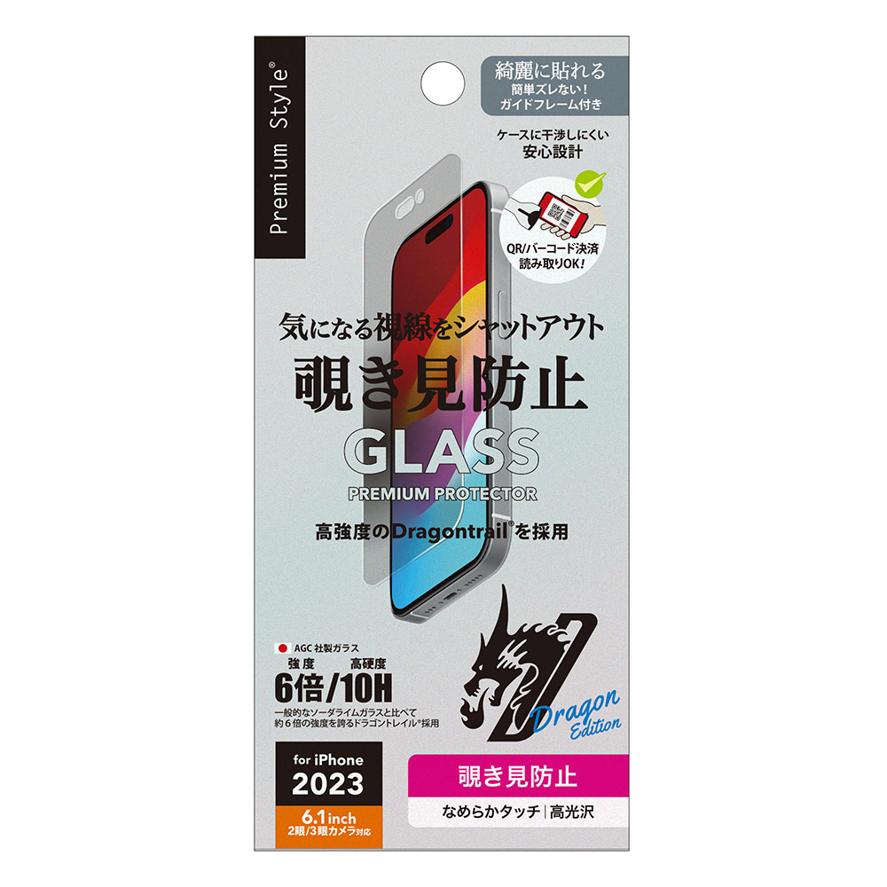 iPhone2023 6.1inch 2眼/3眼 ガイドフレーム付 液晶保護ガラス [覗き見防止]