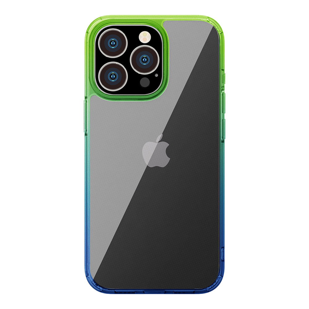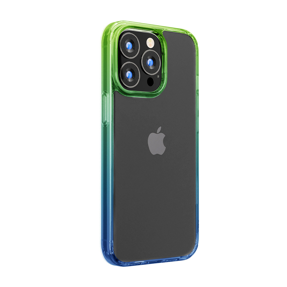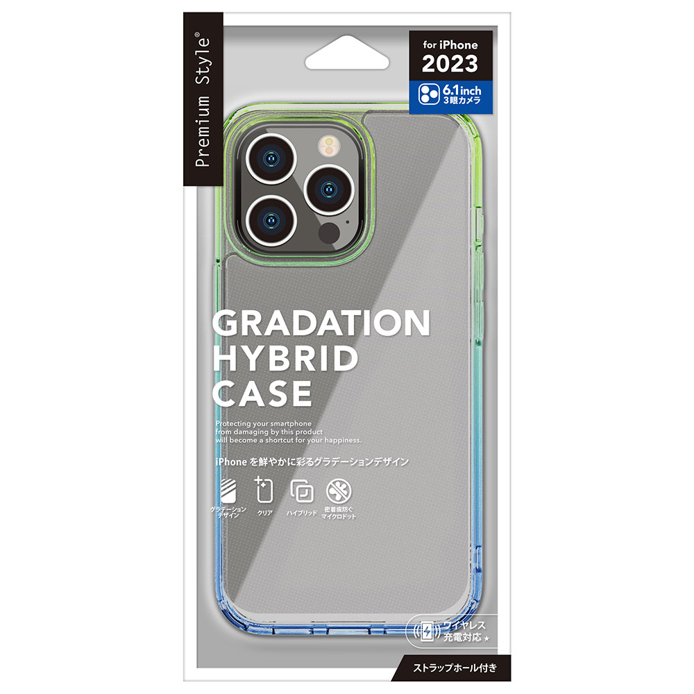 iPhone2023 6.1inch 3眼 グラデーションハイブリッドケース グリーン×ブルー