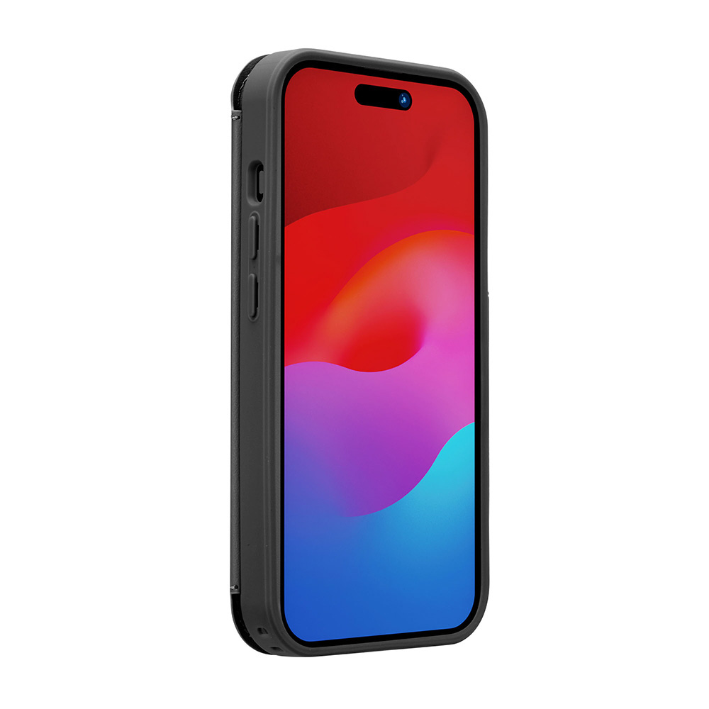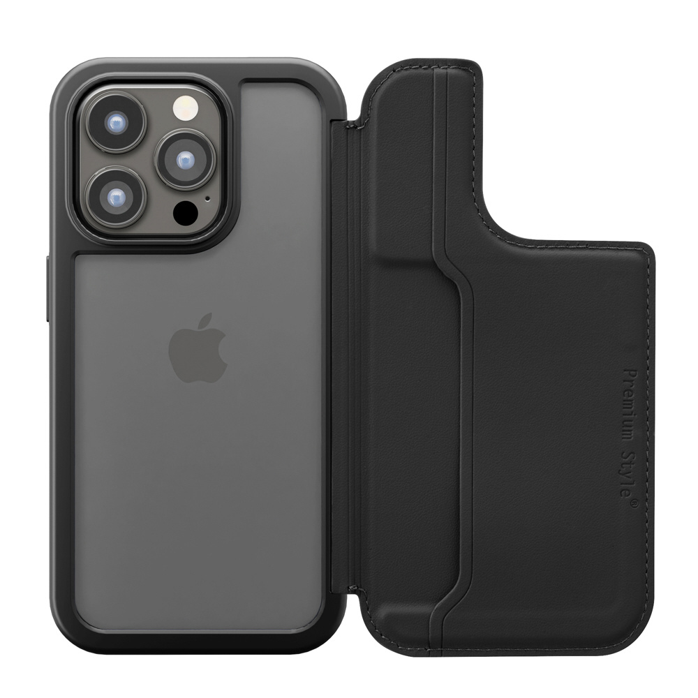 手帳型ならではの煩わしいカバーの開け閉めを解消する為、フリップを背面に移動したiPhone 15 Pro用 バックフリップケース