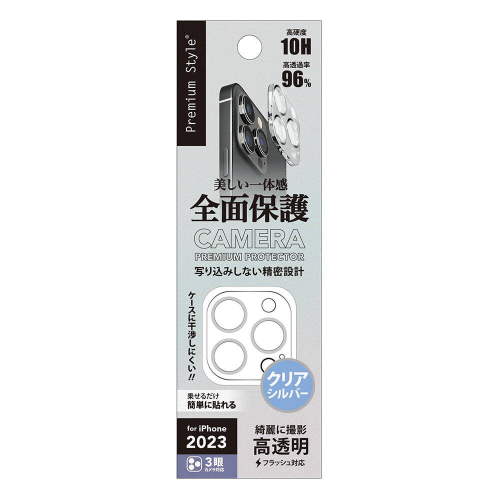 iPhone2023 3眼 カメラフルプロテクター クリア/シルバー