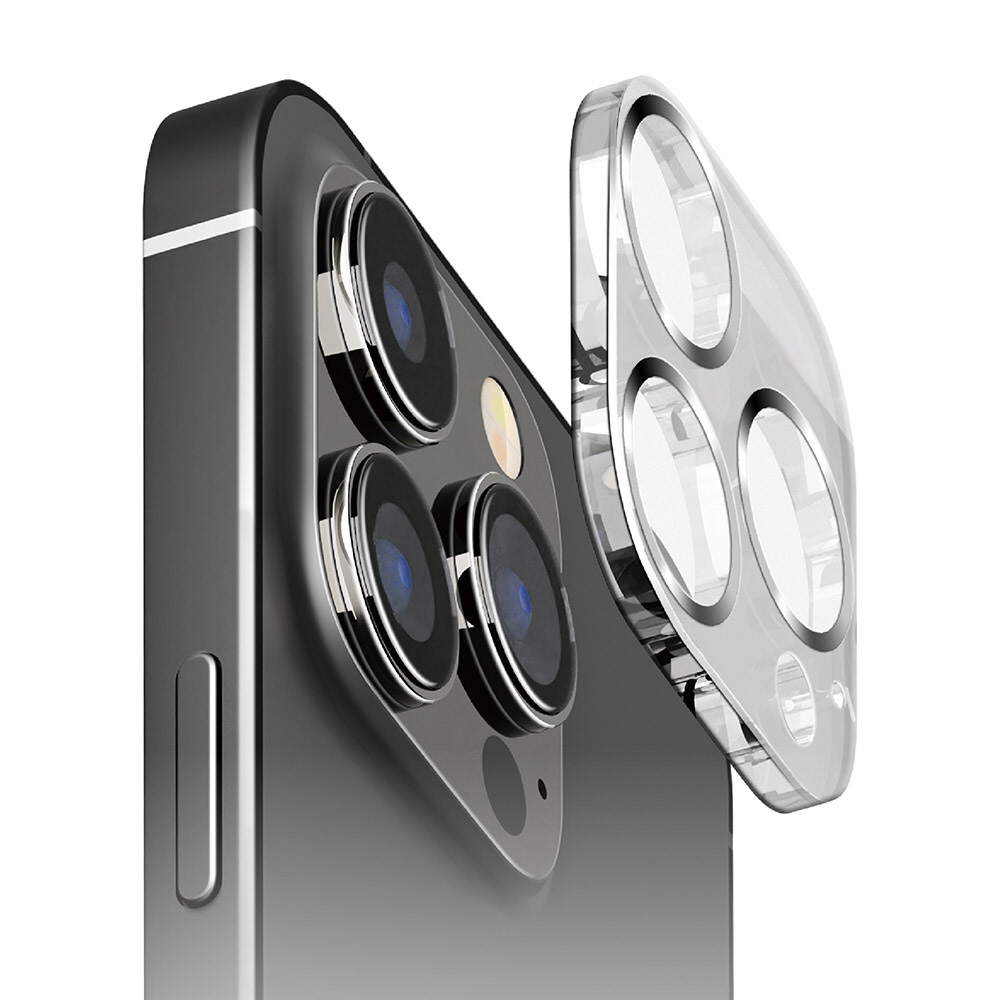 色鮮やかなカメラレンズのフチが特徴的なiPhone 15 Pro/15 Pro Max用のカメラフルプロテクター クリア/シルバー