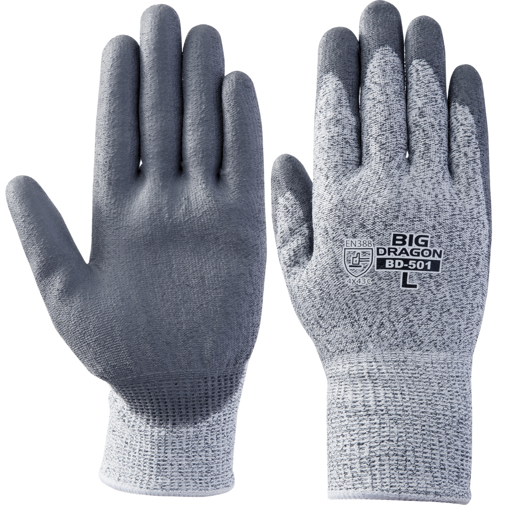 PUコートによる強力な滑り止めと柔軟仕上げによる高い作業性を両立した、富士グローブのノンカットグリップ手袋です。