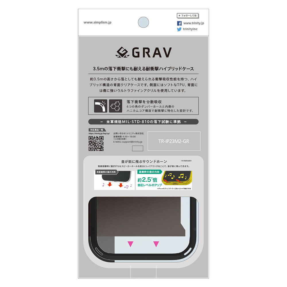 音がこもらず前に飛ぶサウンドホーン構造 3.5mの落下から端末を守る 耐衝撃 ハイブリッドケース