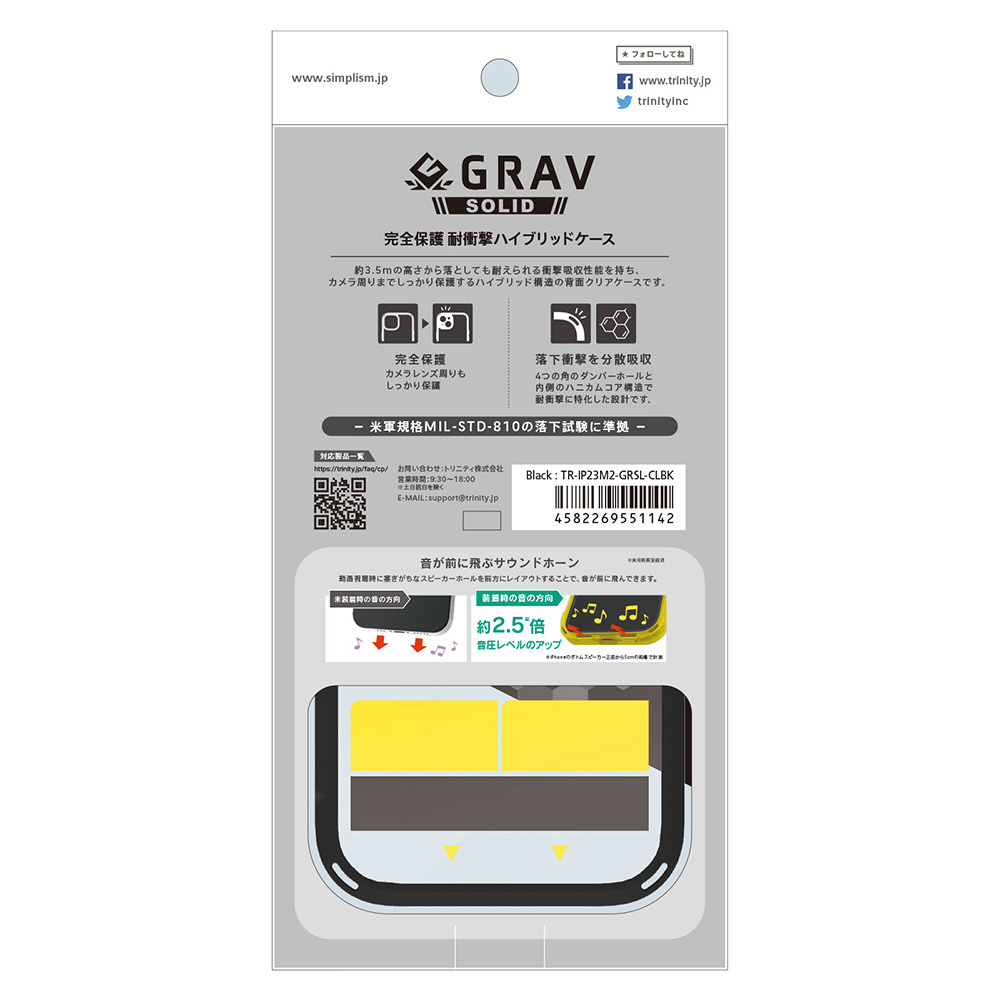 iPhone 15 [GRAV Solid] 超精密設計 衝撃吸収 ハイブリッドケース ブラック TR-IP23M2-GRSL-CLBK