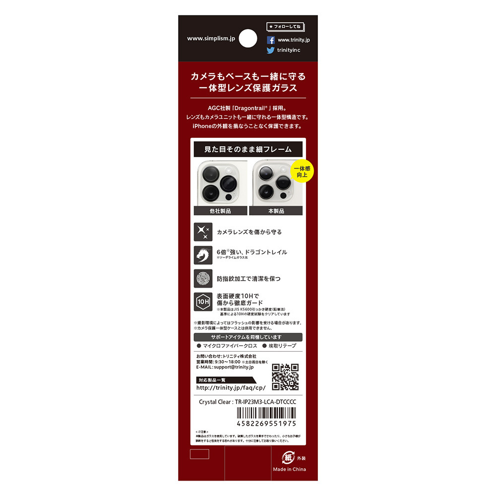 傷が付きにくいドラゴントレイル採用 カメラレンズもカメラユニットも一緒に守る 一体型レンズ保護ガラス クリア