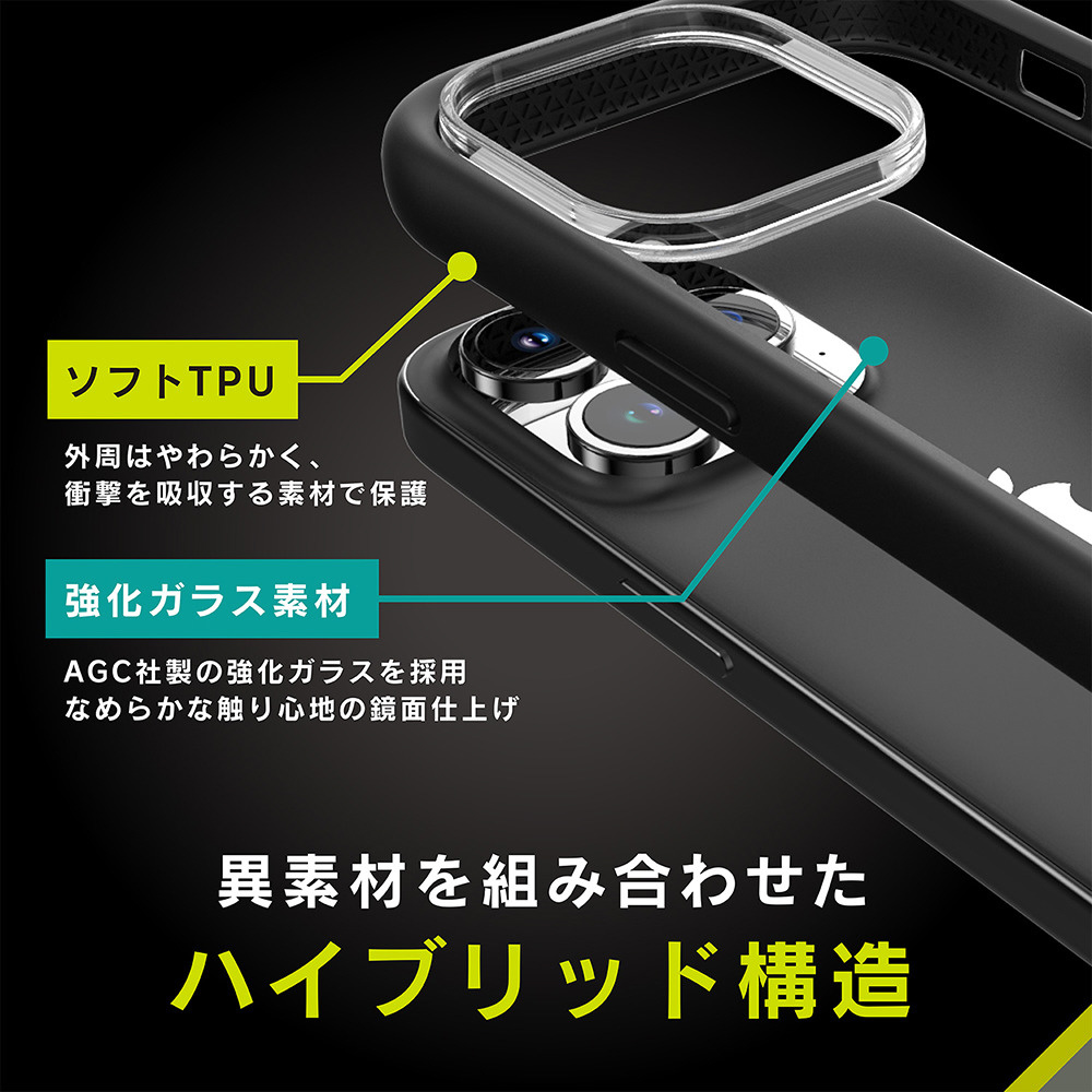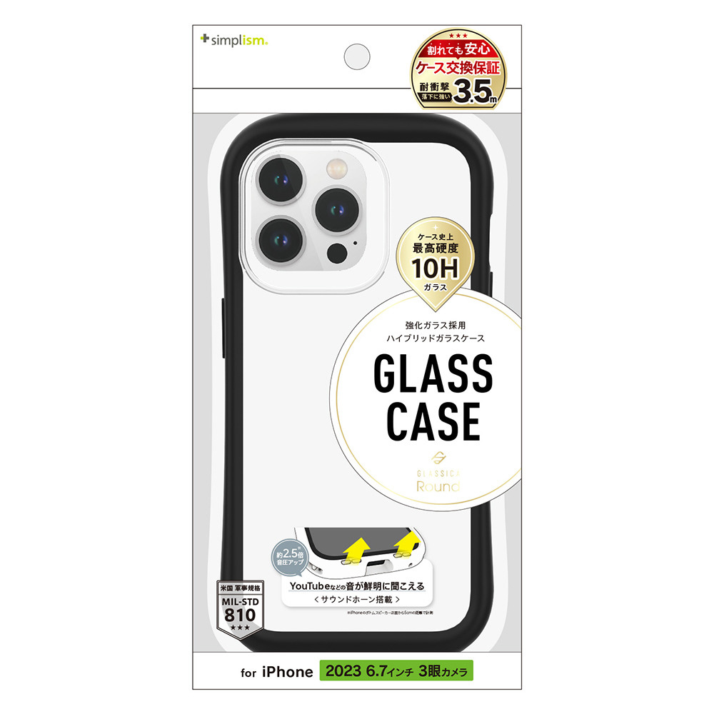 iPhone 15 Pro Max [GLASSICA Round] 耐衝撃 背面ガラスケース ブラック TR-IP23L3-CGCR-CCBK