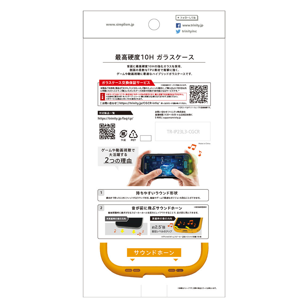 音がこもらず前に飛ぶサウンドホーン構造 AGC社製10Hガラス×肉厚TPUフレーム ハイブリッドガラスケース