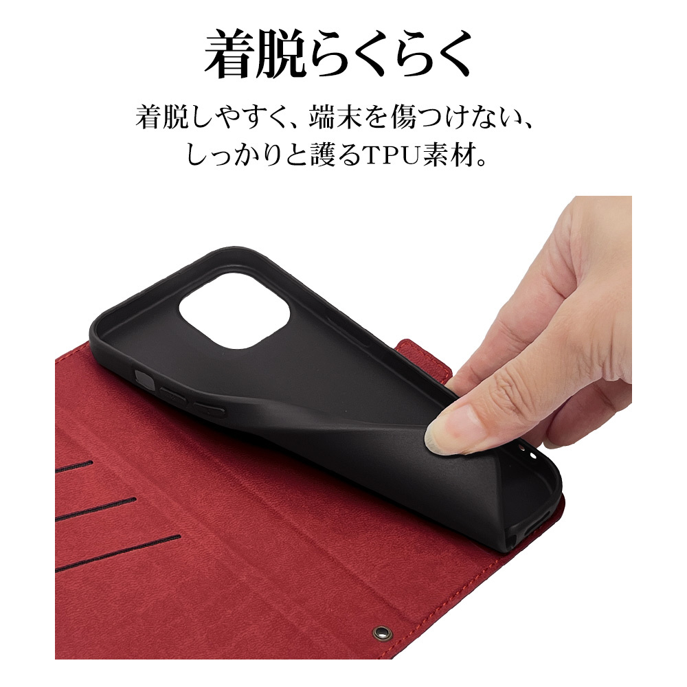 本製品は液晶画面側と背面側の両面を保護できる薄型で持ちやすい手帳型ケースです。