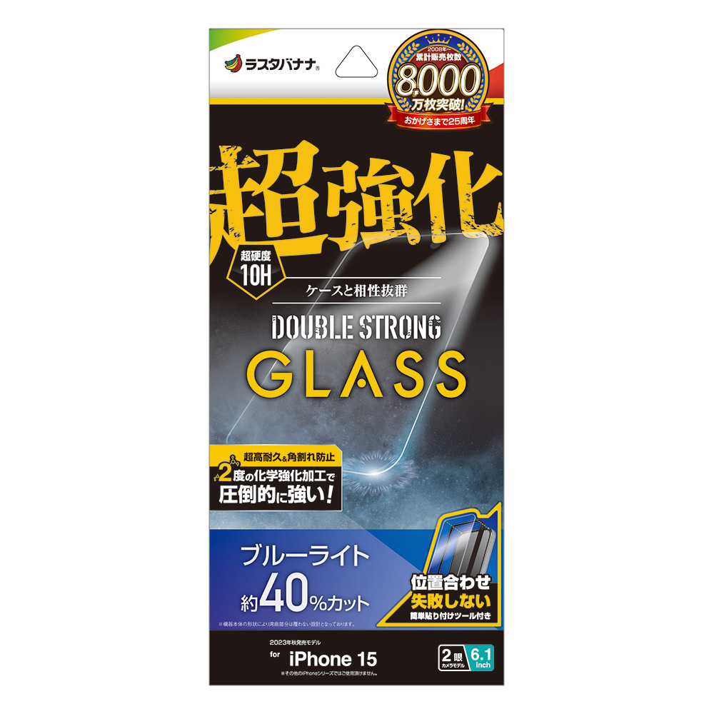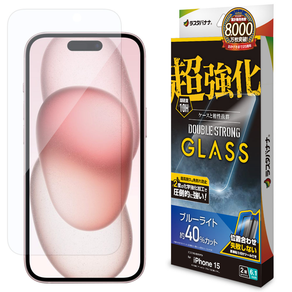 iPhone 15 ガラスフィルム 超強化 ダブルストロング ブルーライトカット 高光沢 硬度10H 簡単貼り付け治具付き
