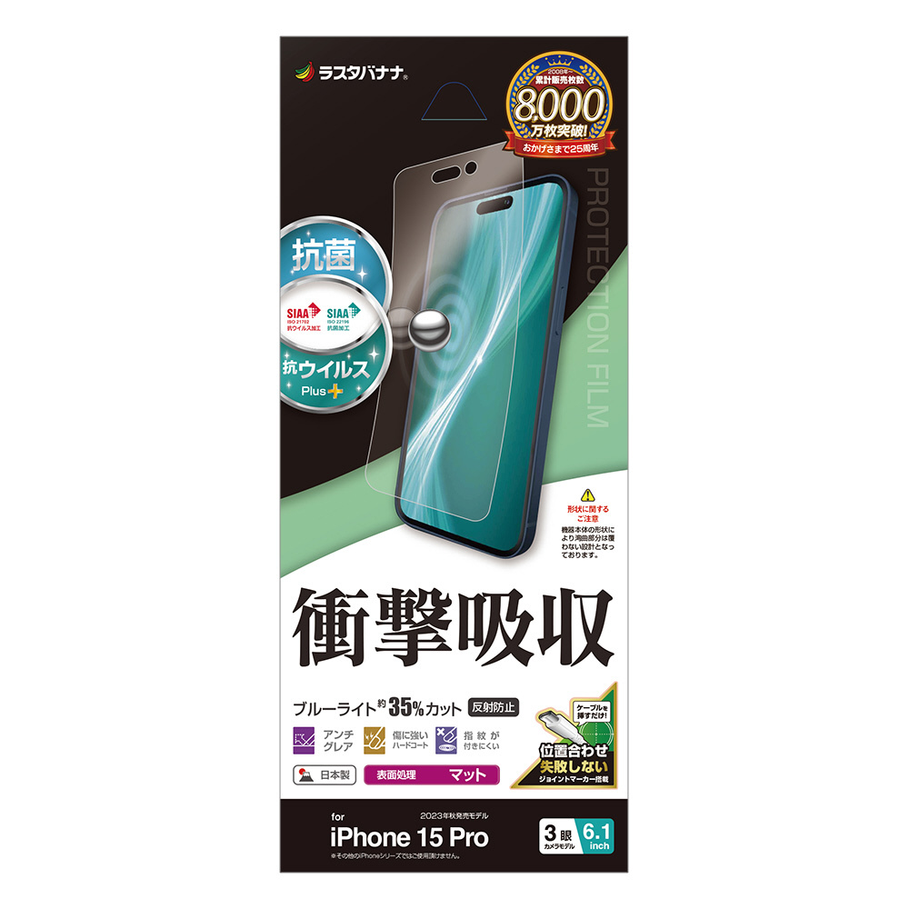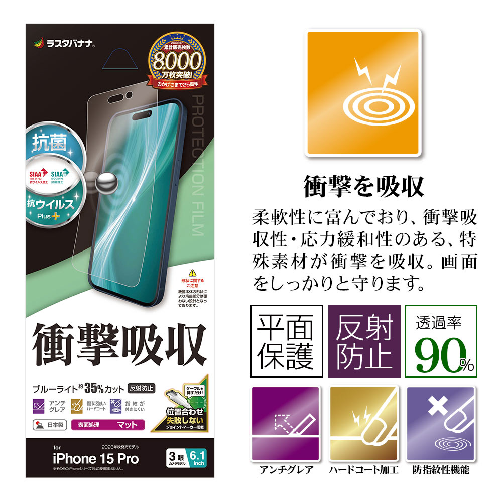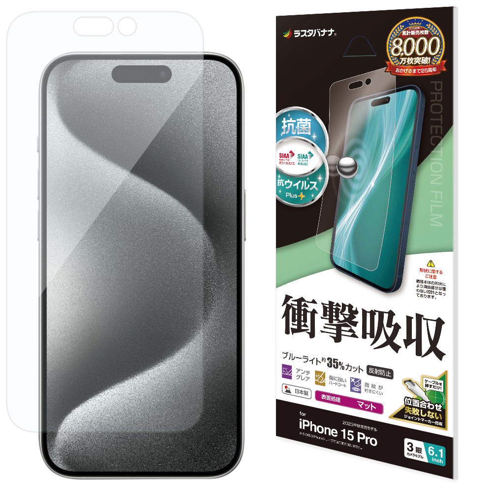 iPhone 15 Pro 衝撃吸収フルスペック 抗菌・抗ウィルス 反射防止フィルム