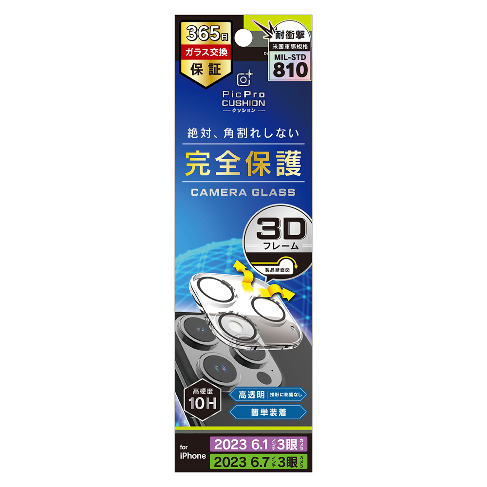 iPhone 15 Pro / 15 Pro Max 3眼用 [PicPro CUSHION] カメラレンズ保護ガラス クリア TR-IP23M3-LCF-PCCL