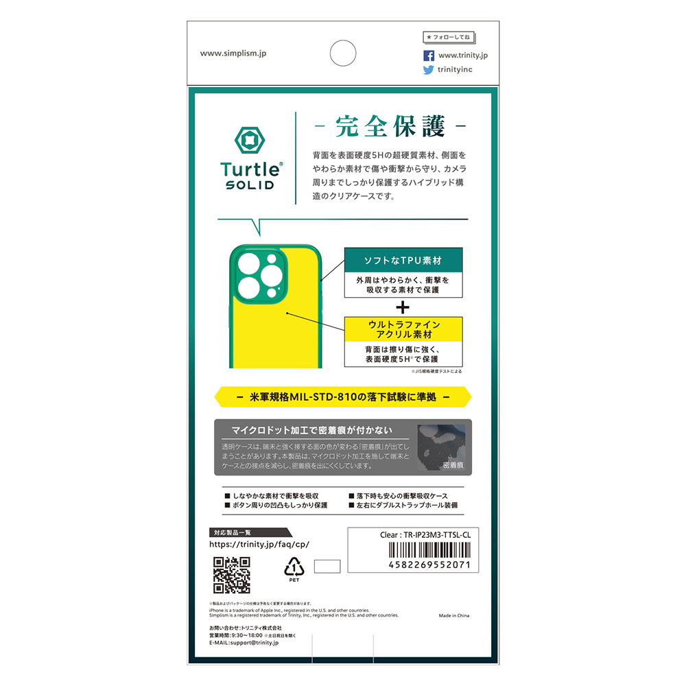 iPhone 15 Pro [Turtle Solid] 超精密設計 ハイブリッドケース クリア TR-IP23M3-TTSL-CL
