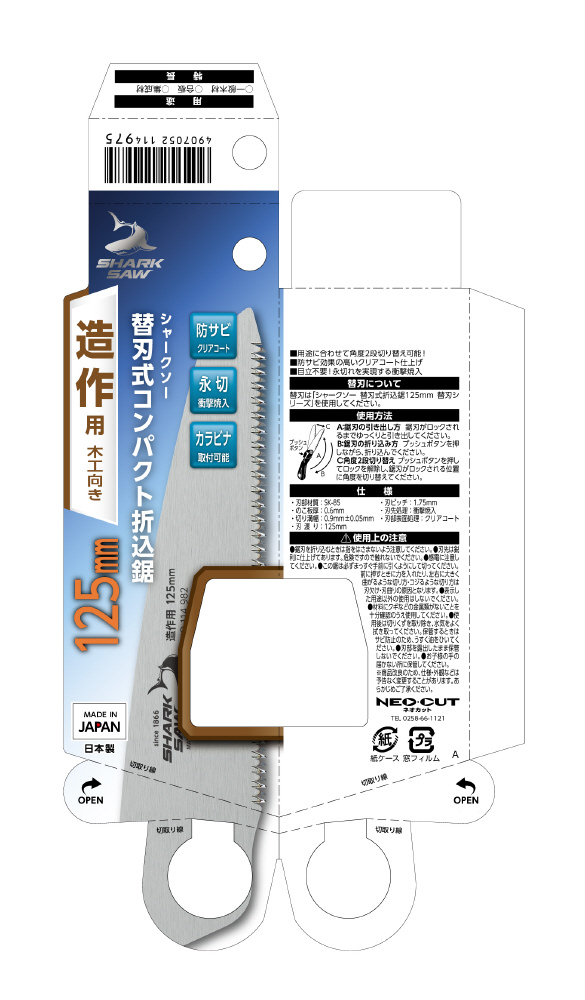 替刃式コンパクト折込鋸造作用木工向き 125mm