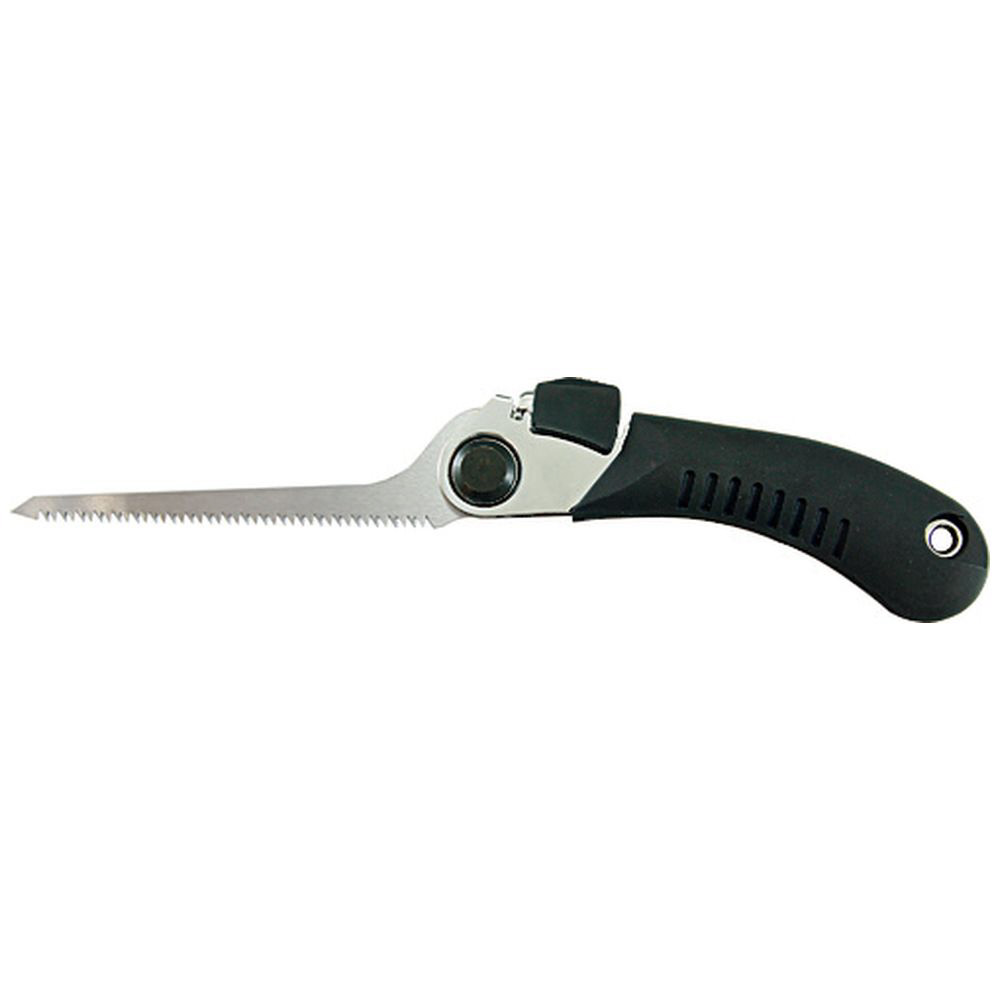 折りたたみ式で軽量・コンパクトな引廻しノコ。替刃式で経済的。滑りにくく手にフィットするグリップ。