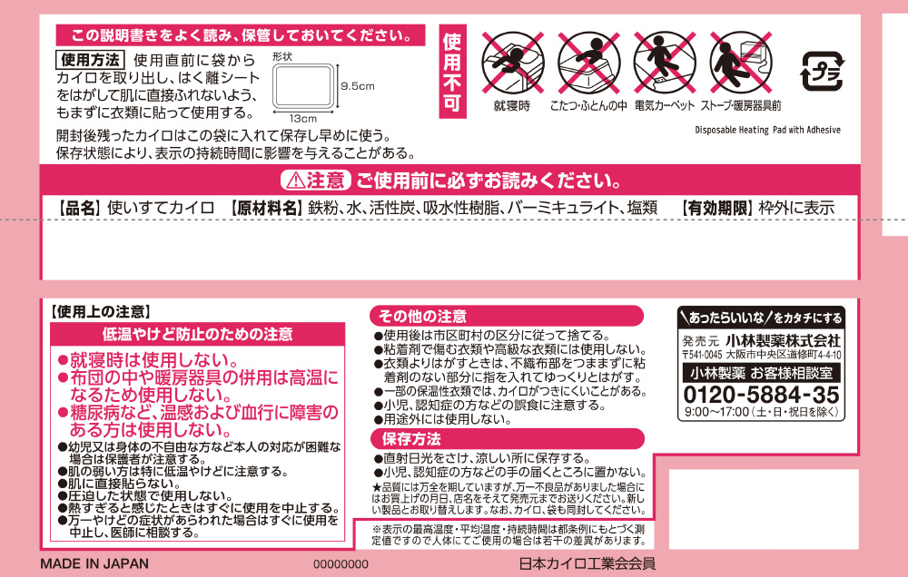 ※表示の最高温度・平均温度・持続時間は都条例にもとづく測定値ですので人体にてご使用の場合は若干の差異があります。