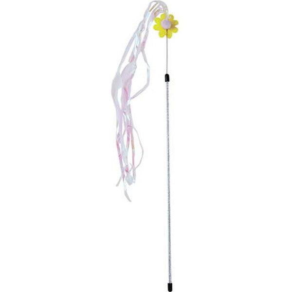 キラキラした持ち手のじゃらし。キラキラしたオーロラテープを使用しており、猫の興味を誘います。