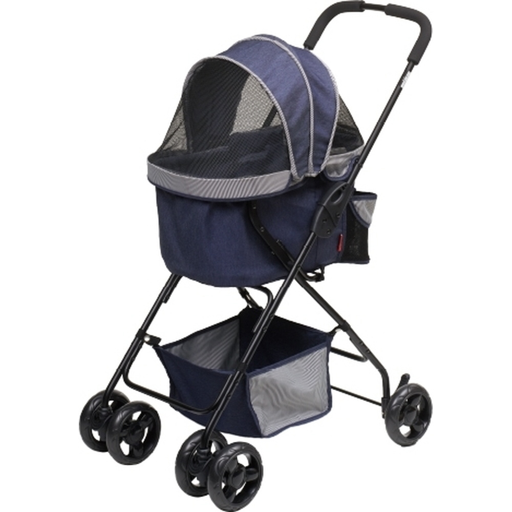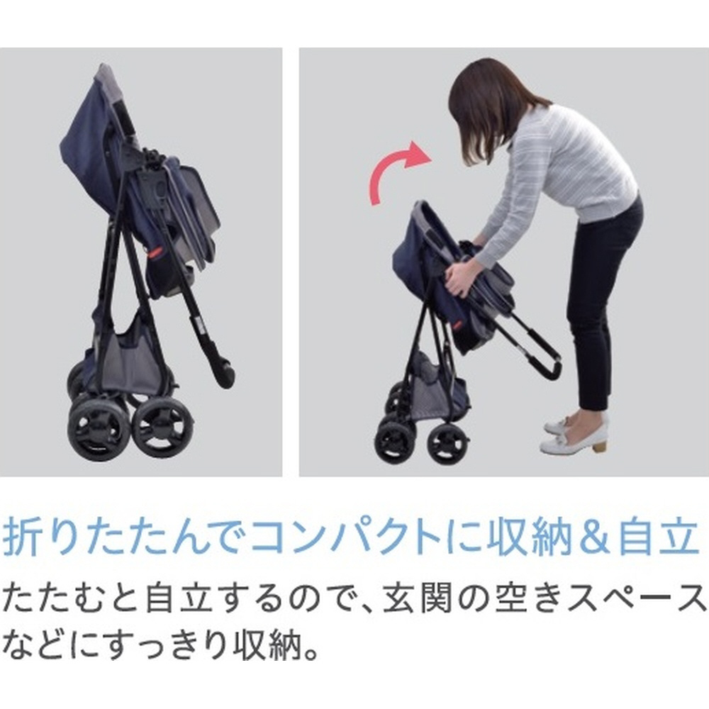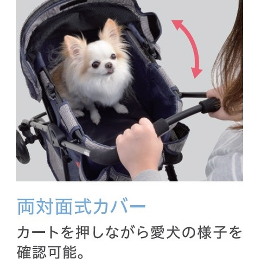 コンパクトに折りたため自立するので、玄関の空きスペースに収納できます。両対面式カバーなので、カートを押しながら愛犬の様子を確認できる!