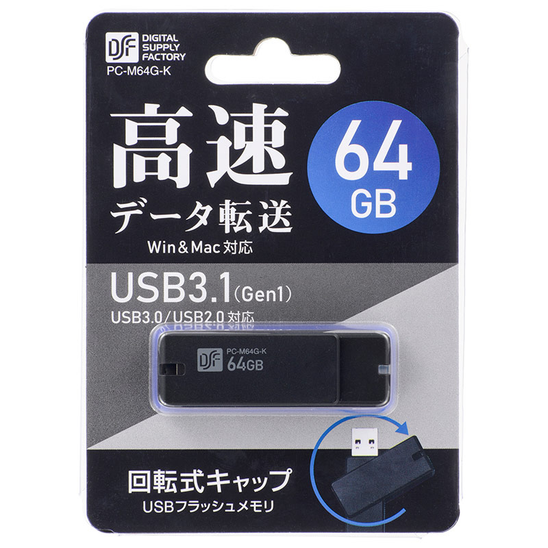 USBメモリ (Mac/Windows) ブラック PC-M64G-K [64GB /USB TypeA /USB3.1 /回転式]