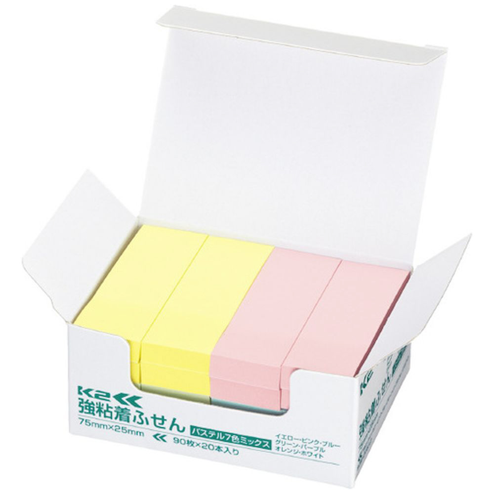 コクヨ 強粘着ふせんK2 75×25混色P20本 レギュラーサイズ(パステル7色ミックス) K2メ−KP7525X20 64658636