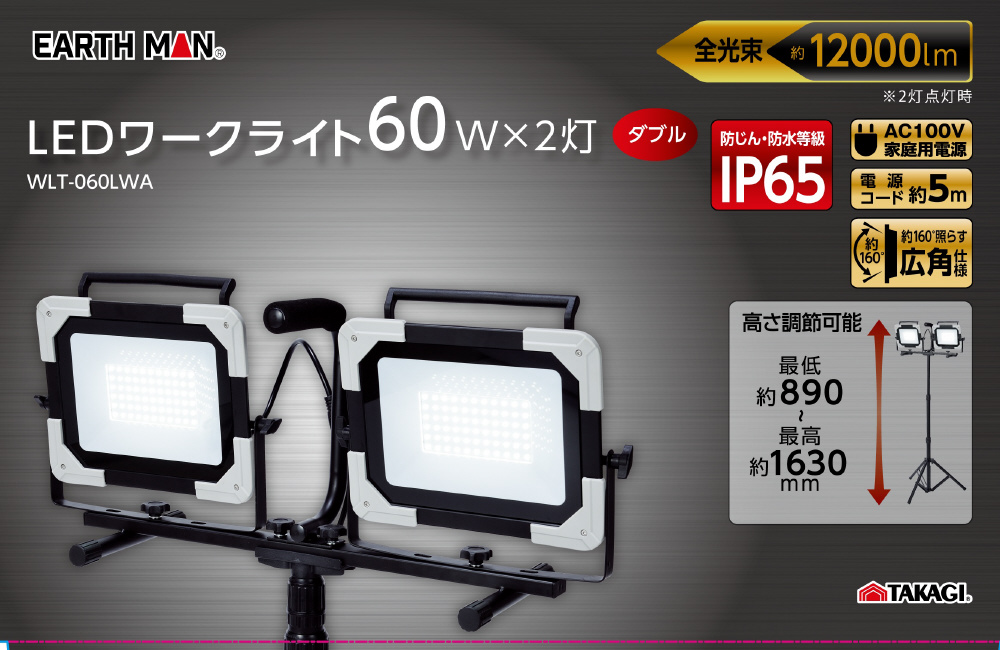 LEDワークライト スタンド式ダブル 60W EARTH MAN WLT-060LWA