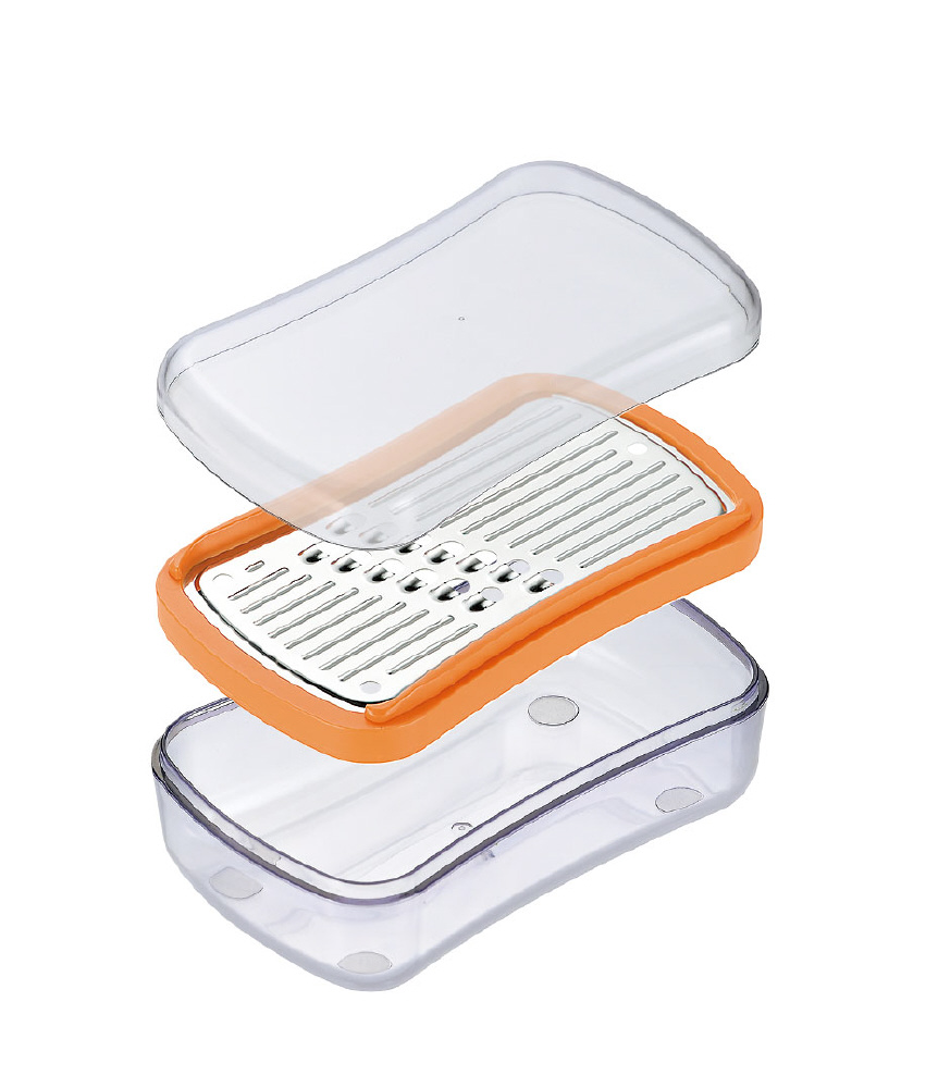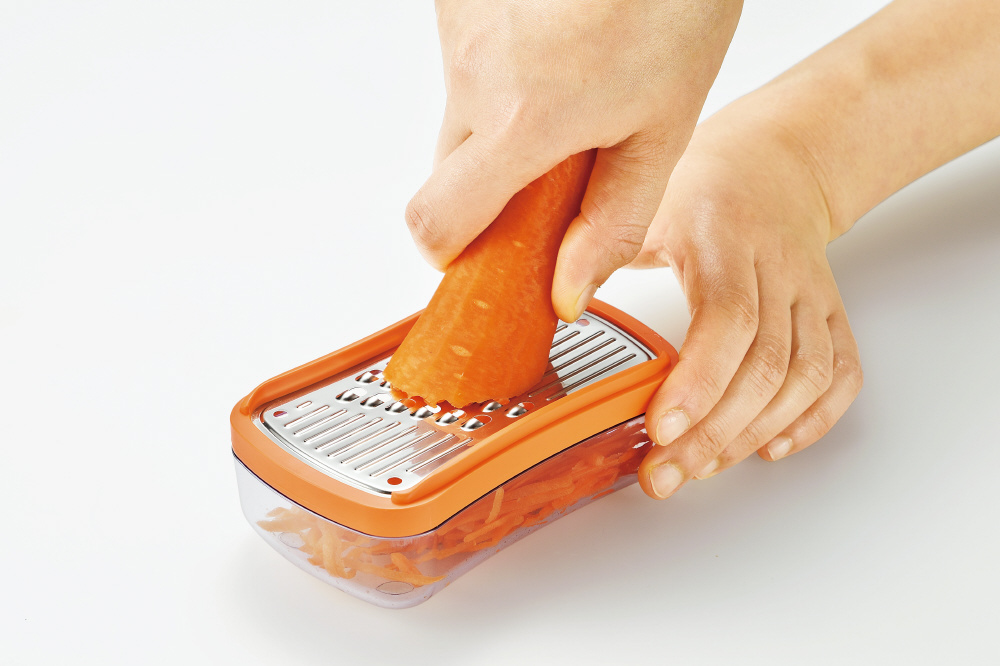 素材:刃部/ステンレス鋼、フレーム/ポリプロピレン、フタ・容器/AS樹脂、すべり止め/ゴム