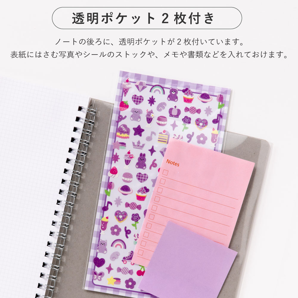 写真やステッカーなどを入れてオリジナルの表紙が作れる、硬質クリアケース付きノート。