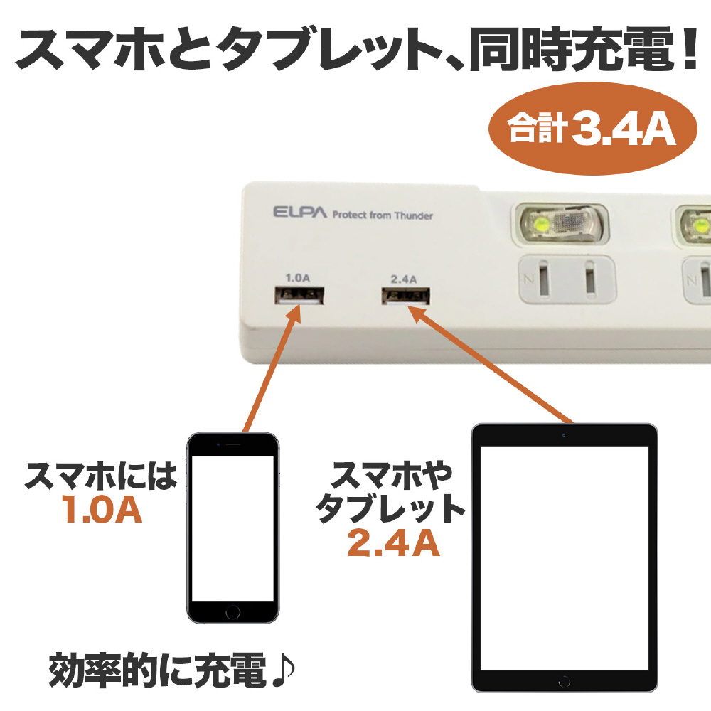 ●スマートフォンとタブレットを2台同時充電可能(USBポート)