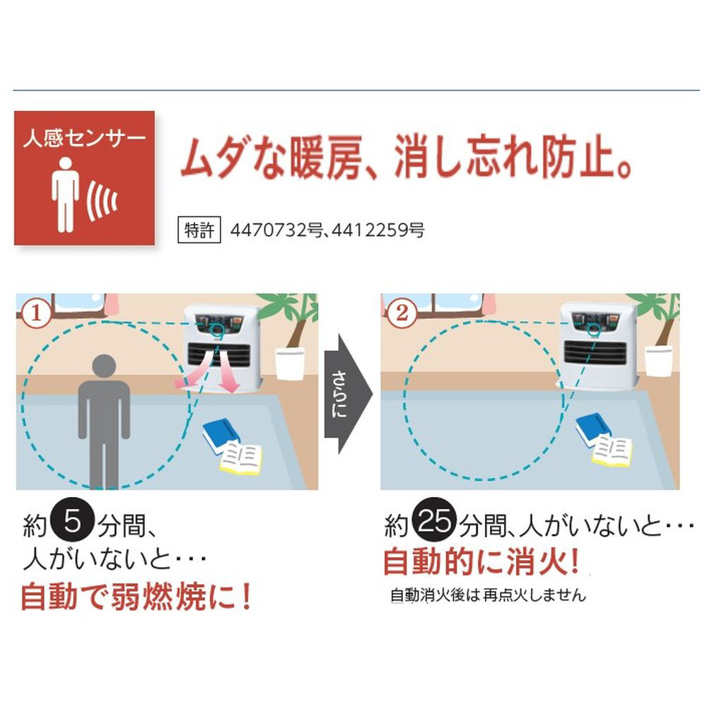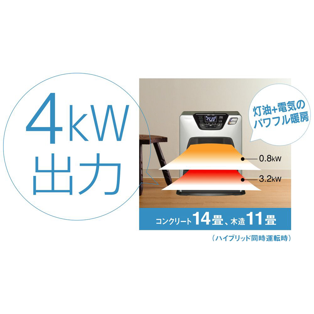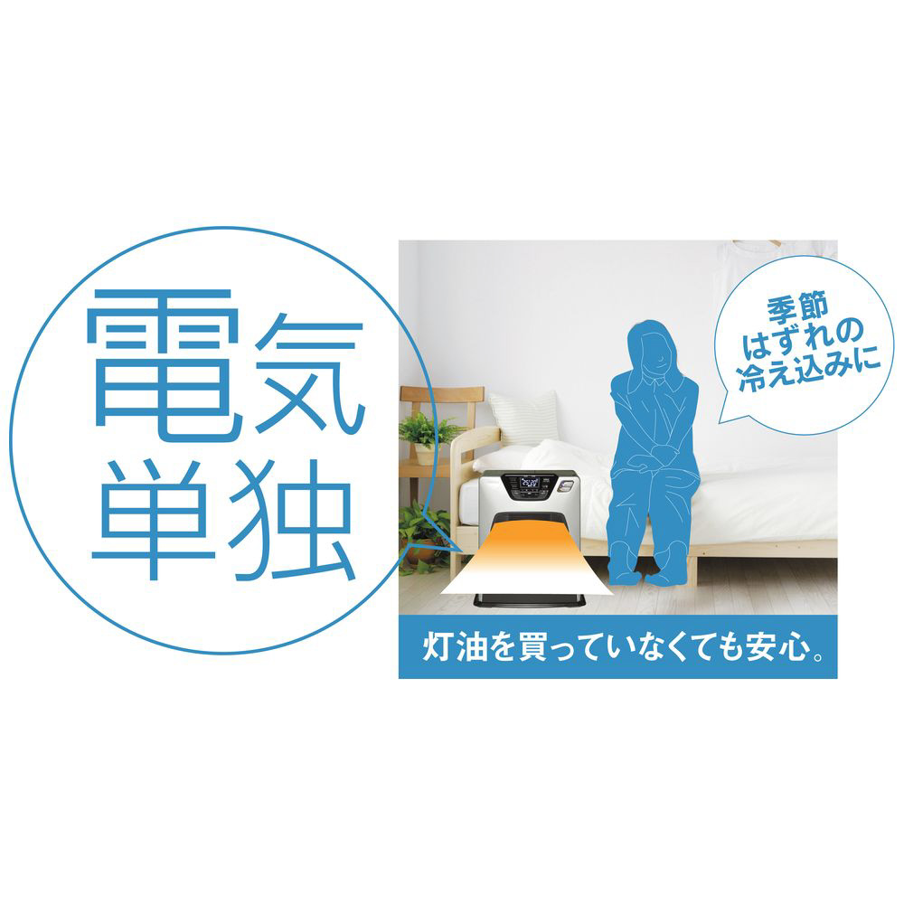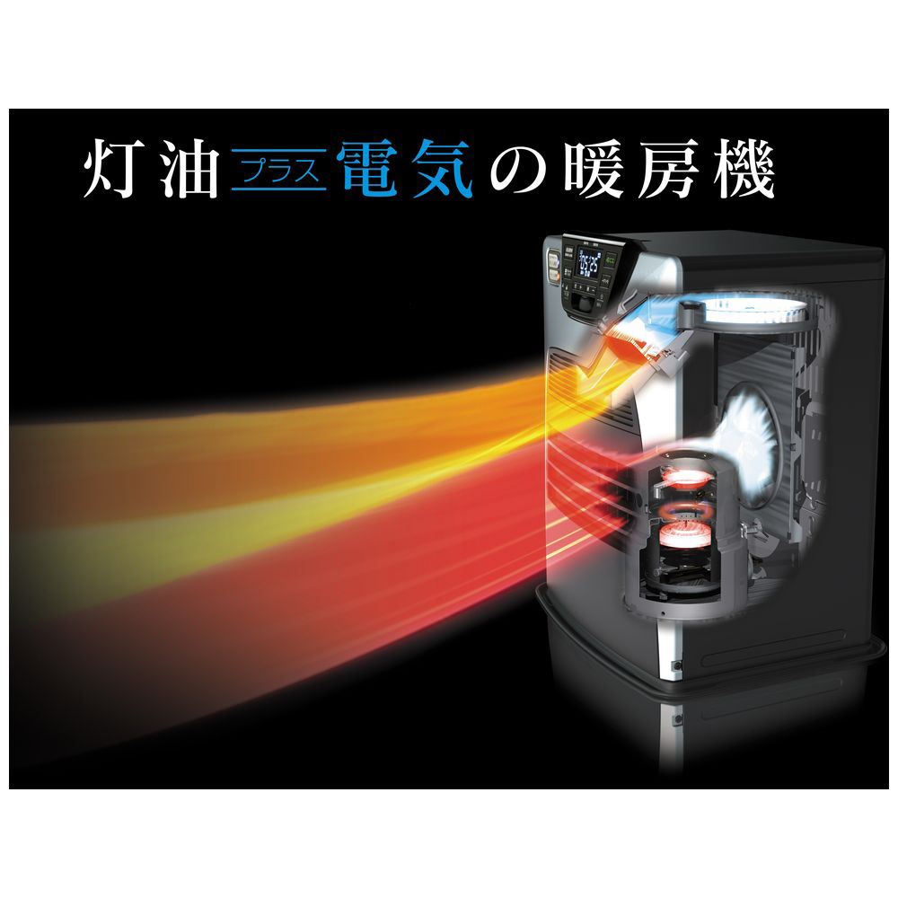 石油ファンヒーター+電気セラミックヒーターの暖房機 ハイパワー運転 人感センサーで灯油節約 エコモード 給油延長機能 タンク容量5L 3年保証