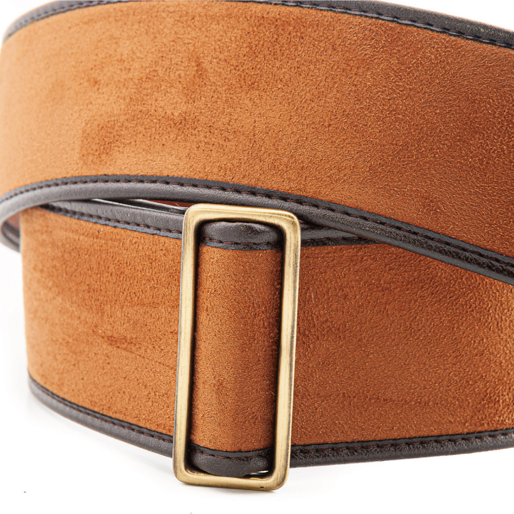 ヌバック、スエードレザー、ピーチレザーに似た高品質の素材を使用し、柔らかくスムースなルックスのストラップです。ソフトな触り心地と内臓パッドにより快適で、エンドタブにピックホルダーを搭載し機能性も持ち合わせたストラップに仕上がりました。100%動物を使用しない新しいコンセプトシリーズです。