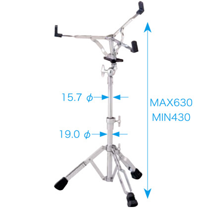 バスケットの先端には確実にスネアドラムを固定するラバーを採用し、バスケットの開閉調整はスクリュータイプで演奏時もしっかりスネアドラムをホールドします。