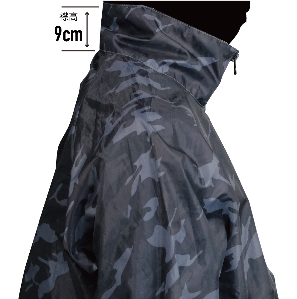 撥水コーティング加工を施した迷彩柄の上下組立ち襟ヤッケです。