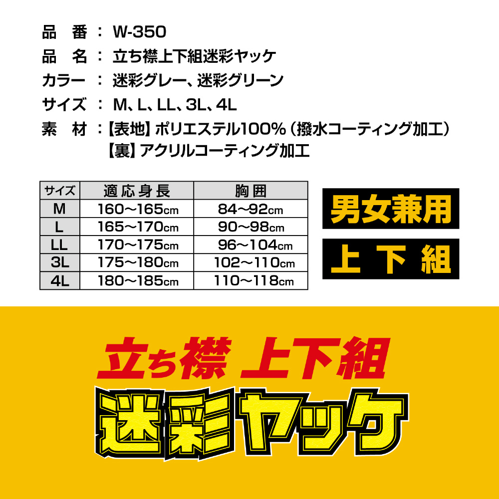 W-350 立ち襟上下組迷彩ヤッケ GC L
