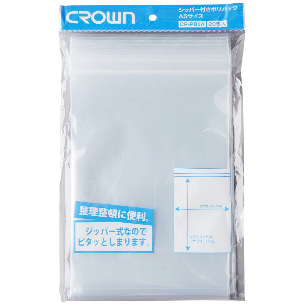 ジッパー付ポリバック(A5用) CR-PB5A-T(20枚) クラウン