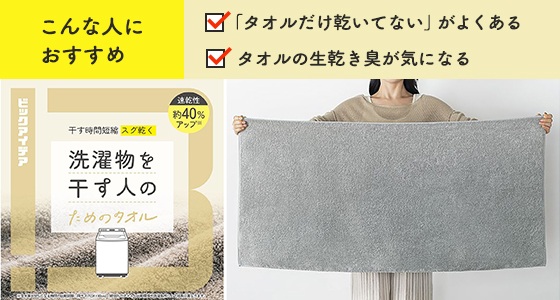 干す時間短縮!洗濯物を干す人の ためのバスタオル(約60×120cm)