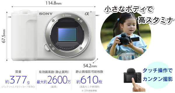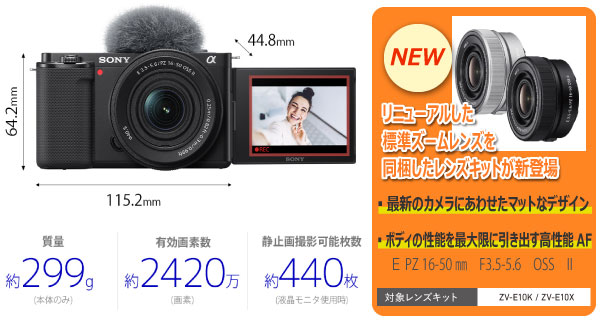 VLOGCAM ZV-E10 [ズームレンズ]動画撮影はもちろん、静止画撮影もカンタン・キレイ。描写力に優れたAPS-Cセンサーを搭載したコンパクトなVlogミラーレスカメラ