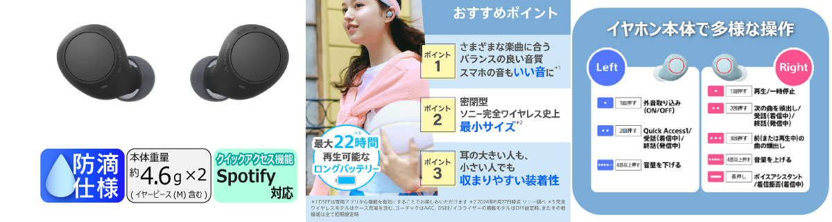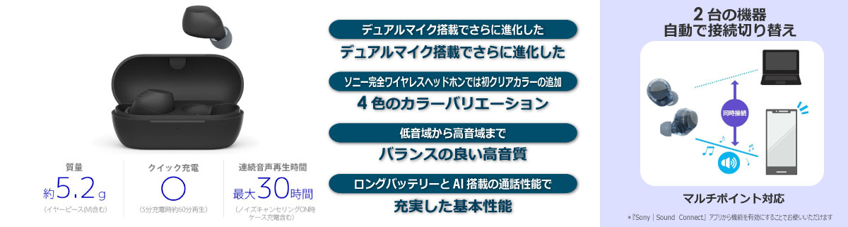 完全ワイヤレスイヤホン WF-C510もっと小さく、もっといい音で。密閉型ソニー完全ワイヤレス史上最小サイズ* 2024年8月27日時点 ソニー調べ
