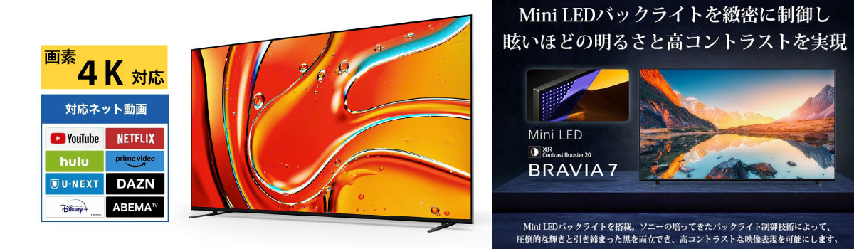MiniLED BRAVIA K XR70シリーズ眩いほどの明るさを実現。高コントラストかつ鮮やかに映像を描く。